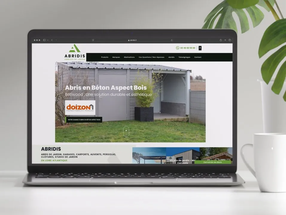 En marge du projet, notre équipe a conseillé de compléter le logo par une signature explicite définissant le cœur de métier d’Abridis : Annexes de jardin.
