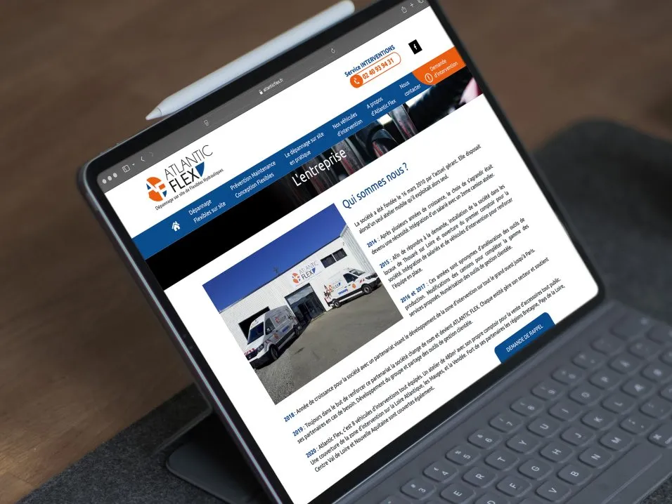 L'équipe d'Atlantic Flex souhaitait la création d'un site internet sur mesure, développant l'identité graphique de l'entreprise.