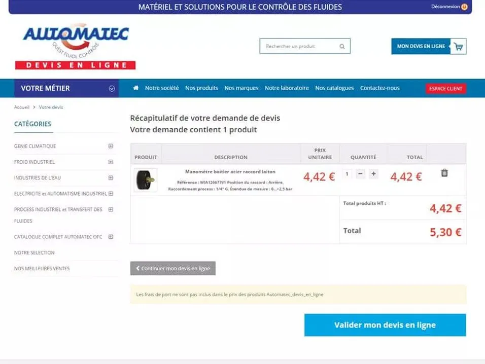 Automatec souhaitait utiliser le site internet pour traiter les demandes de devis en ligne des clients en compte tout en proposant l'ouverture de compte aux prospects qualifiés.