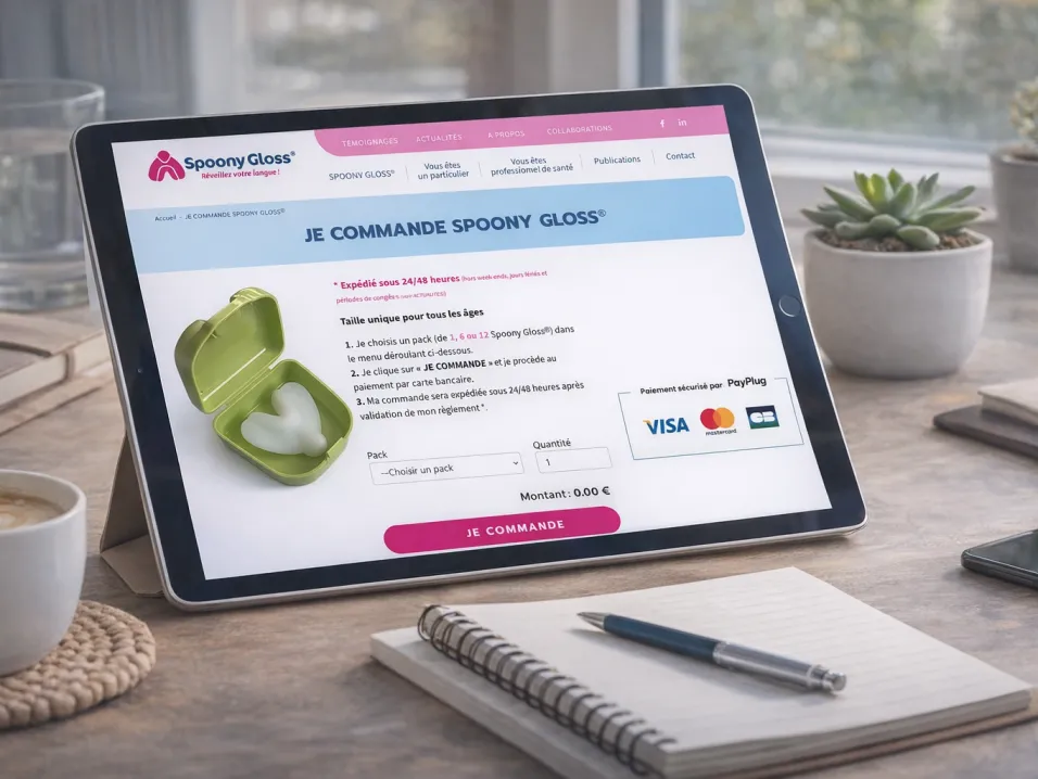 Créé par deux professionnels du milieu orthodontique, Spoony Gloss® est un dispositif permettant de traiter les dysfonctions linguales. La solution, peu onéreuse et ayant prouvé son efficacité auprès de particuliers et de professionnels, l’entreprise a décidé de commercialiser le Spoony Gloss® sur un site web dédié.