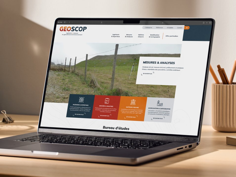GEOSCOP, implantée à Nantes, Brest et Bordeaux, disposait d'un site d'ancienne génération, non compatible mobile et dont les contenus n'étaient pas détaillés et ne présentaient qu'une partie des multiples activités du bureau d'études.
