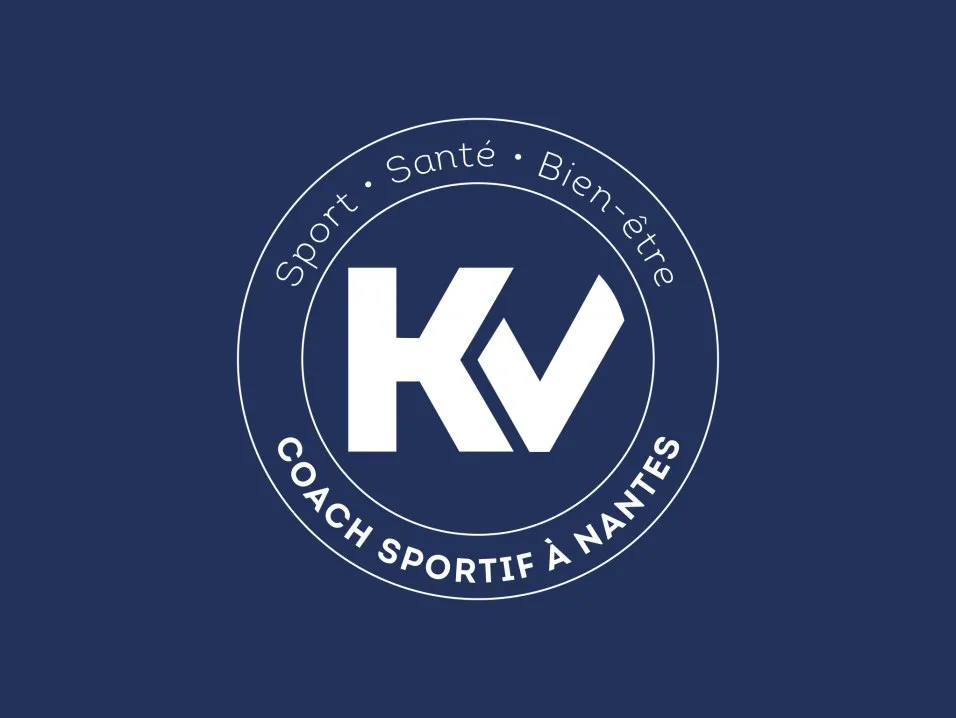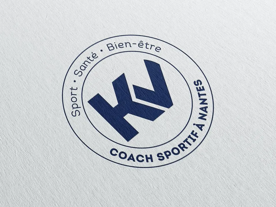 L'ensemble, bleu foncé, est encerclé par la baseline "Coach Sportif à Nantes", complété par "Sport - Santé - Bien-être".