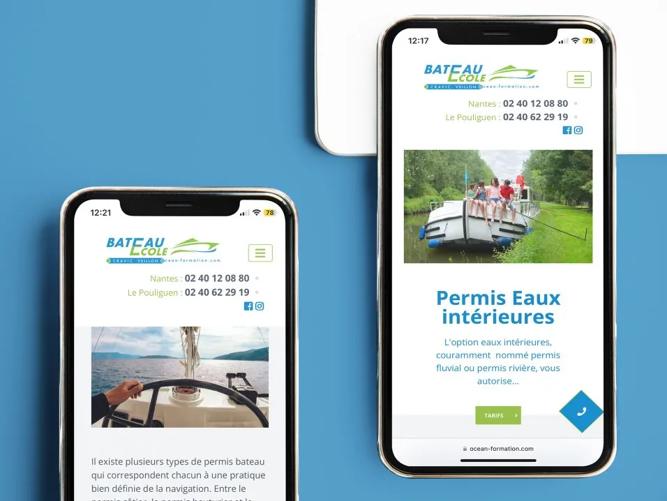 Depuis 2005, notre équipe travaille tous les 5 ans à la création d'un nouveau site d'Océan Formation, le spécialiste du permis bateau à Nantes et au Pouliguen. Le dernier site, même s'il restait efficace et continuait à générer des contacts, été devenu vieillissant en termes d'image.