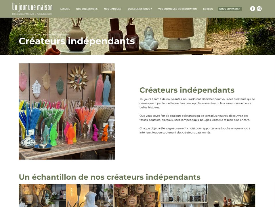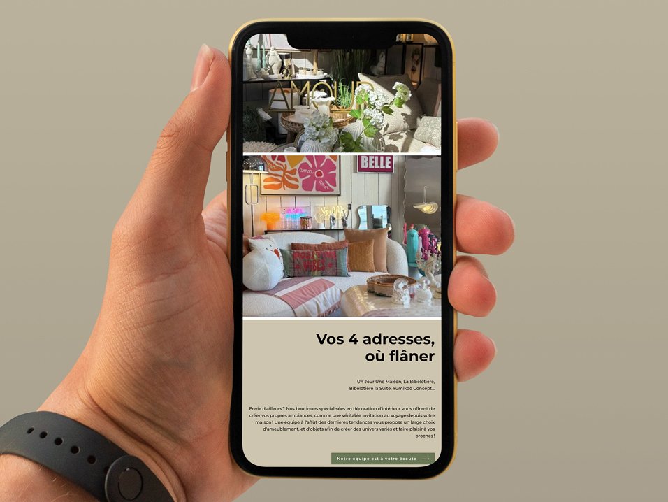 Après la création de la nouvelle identité graphique d’Un Jour Une Maison, notre équipe a développé une interface web mettant l’accent sur les visuels d’ambiance et les mises en scène décoratives, afin de refléter l’univers chaleureux et inspirant des magasins.